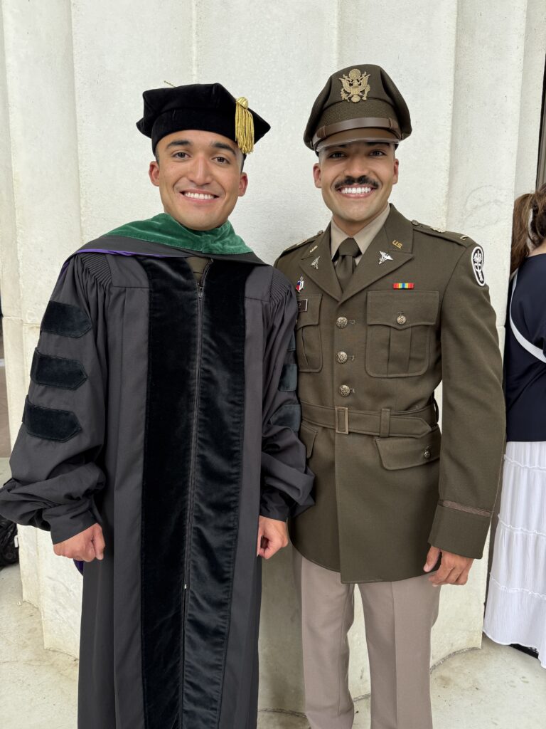 Now headed to El Paso for a five-year general surgery residency, Chris is also motivated by the communities he’ll serve. Half Mexican and half Puerto Rican, he is a native Spanish speaker who sees representation in medicine as a meaningful part of his calling. His twin brother matched into urology at UT Health in San Antonio, just a few hours away. Together, they have traveled parallel paths through medicine since scribing side by side in undergrad.